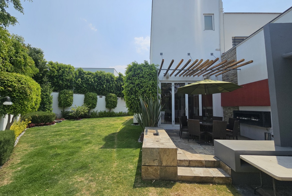 EM Luxury Homes presenta una casa con todos los atributos para vivir en paz y tranquilidad dentro una privada con seguridad 24/7 y vistas maravillosas. Al entrar a la casa, se siente de inmediato esa sensación de “hogar” por lo acogedora y funcional centrando especialmente la atención en el área de la sala y el comedor gracias a sus magníficas alturas y exquisita iluminación, cautivando a cualquier invitado por su buen gusto y diseño. El área social es su mayor acierto, tiene una linda barra de mármol negro en medio que le da un toque elegante y moderno. La casa cuenta con salida a una terraza exterior techada con área para asador ofreciendo la oportunidad de comer al aire libre. Tiene un jardín arbolado de 150 m2 que le da vista a toda el área social. Cuenta con un cuarto que puede ser sala de T.V. ó ideal para hacer home-office. La cocina está equipada y tiene cubierta de granito. Cuenta con 2 recámaras en un nivel, ambas con gran terraza y vistas a la ciudad teniendo en medio un cuarto de TV para para convivir en familia. La tercer recámara que es la principal, está medio nivel arriba con un lindo balcón a lo largo y vista al jardín. La parte superior de la casa tiene calefacción hidrónica. En el área de garage, hay una suite para choferes ó escoltas, además de 3 bodegas y hay una entrada directa al jardín para cuando haya algún evento. Esta casa es muy linda de día pero en la noche con la iluminación, se vuelve aún más bonita.